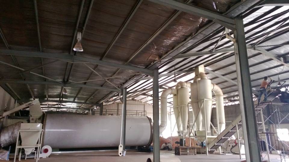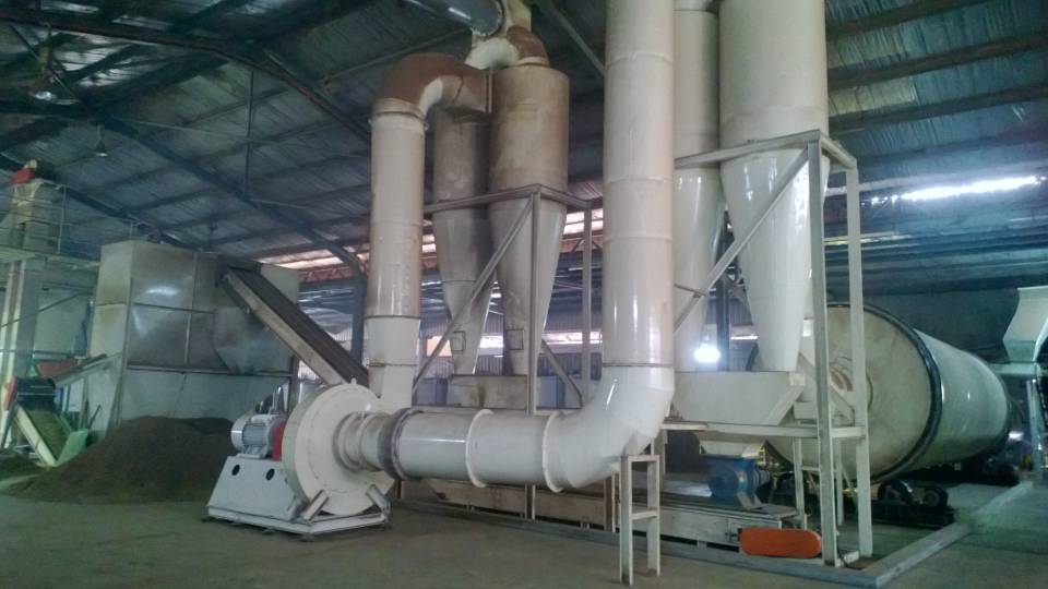 - 比单筒烘干机减少占地50%左右,土建投资降低50%左右,电耗降低60%。